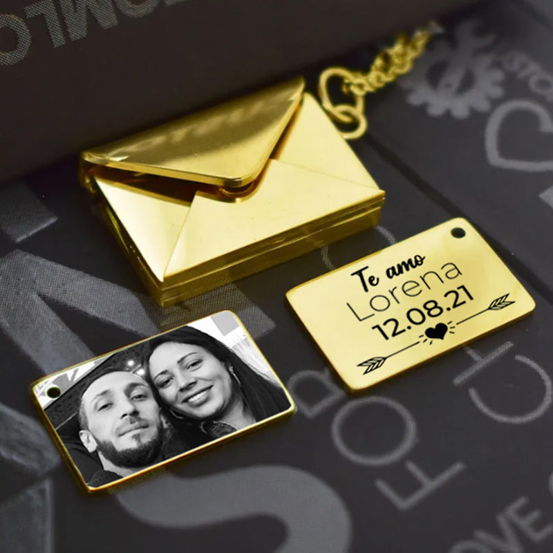 Dije acero inoxidable foto personalizada y mensaje personalizado , grabado laser , empaque caja de regalo.
